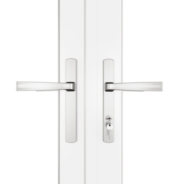 Comes complete with slim lever handle with key lock, button track system, and heavy-duty hinges, providing convenience, security, and easy installation.