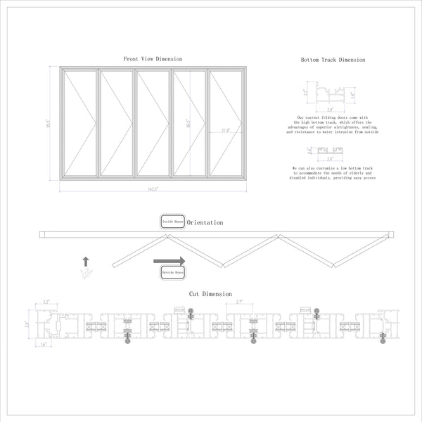 - Door Orientation: The door panels fold from Left To Right when viewed from the outside looking in. Please refer to the photo gallery and detailed drawing for reference.