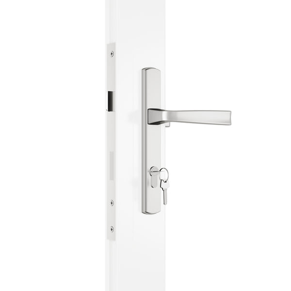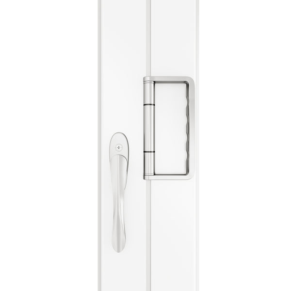Comes complete with slim lever handle with key lock, button track system, and heavy-duty hinges, providing convenience, security, and easy installation.