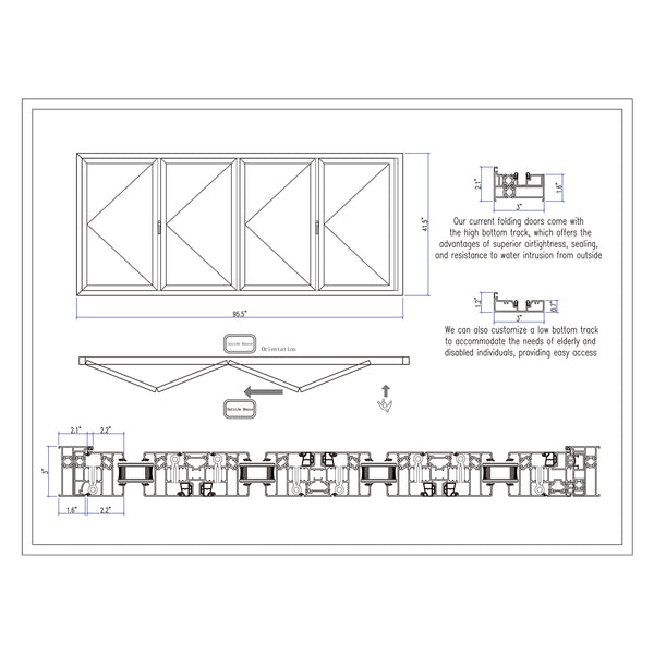 Window Orientation: Panels fold from Right to Left when viewed from the outside looking in. (See photo gallery and detailed drawings for reference.)