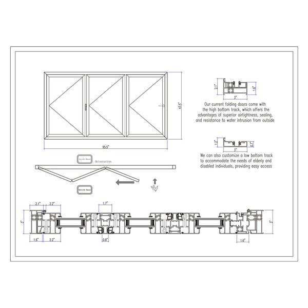 Window Orientation: Panels fold from Right to Left when viewed from the outside looking in. (See photo gallery and detailed drawings for reference.)