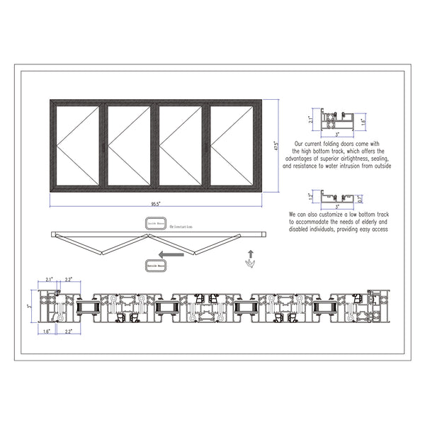 Window Orientation: Panels fold from Right to Left when viewed from the outside looking in. (See photo gallery and detailed drawings for reference.)