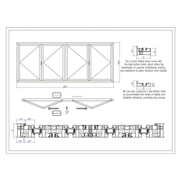 Window Orientation: Panels fold from Dual Open when viewed from the outside looking in. (See photo gallery and detailed drawings for reference.)