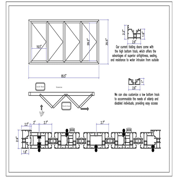 - Window Orientation: The panels fold from Left to Right when viewed from the outside looking in. Please refer to the photo gallery and detailed drawing for reference.