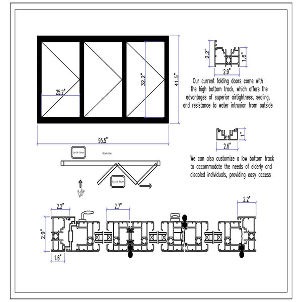 - Window Orientation: The panels fold from Left to Right when viewed from the outside looking in. Please refer to the photo gallery and detailed drawing for reference.