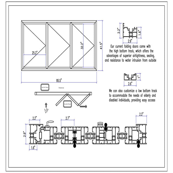 Window Orientation: The panels fold from Left to Right when viewed from the outside looking in. Please refer to the photo gallery and detailed drawing for reference.