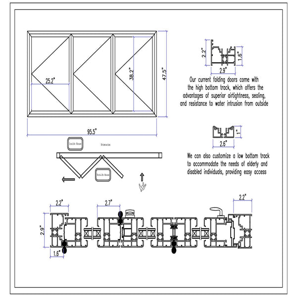 - Window Orientation: The panels fold from Right to Left when viewed from the outside looking in. Please refer to the photo gallery and detailed drawing for reference.