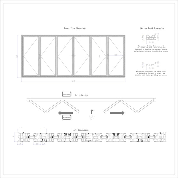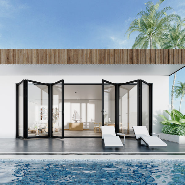 Transform your patio into a stunning, functional, and inviting space with our Aluminum Folding Glass Door. This modern architectural marvel not only enhances the aesthetic appeal of your home but also offers unmatched versatility and convenience. Designed to create a seamless transition between your indoor and outdoor living areas, this folding glass door is the perfect addition to elevate your lifestyle.Experience the perfect synergy of modern design, functionality, and comfort. Make your patio an extension of your living space, where you can immerse yourself in the beauty of the outdoors, all while enjoying the comfort and convenience of your home.