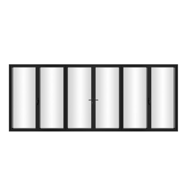 KaMic Elite-Fold 192" x 80" 6-Panel Aluminum Folding Door in Sleek Black with Hidden Hinges & Rollers, Dual Open Outward Folding Design - Model # SE-FD6PBK19280-DO